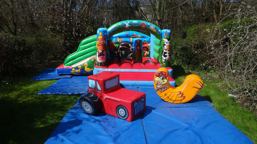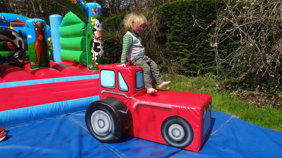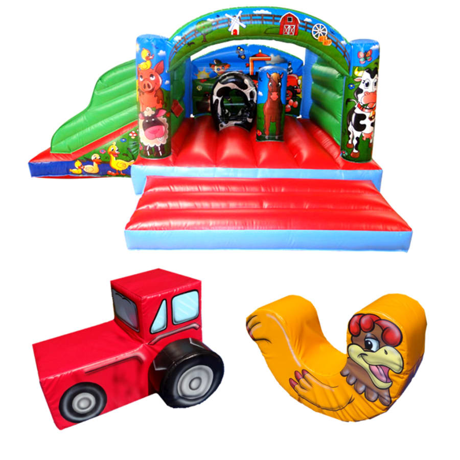 This is a fantastic option for 2 to 3 year old Birthday parties. The inflatable has a great little slide and some pop-ups to play on. The Soft Play Rooster Rocker and Tractor look fab and are great fun for the little ones. The Tractor has detachable wheels which can be rolled around and played with separately.