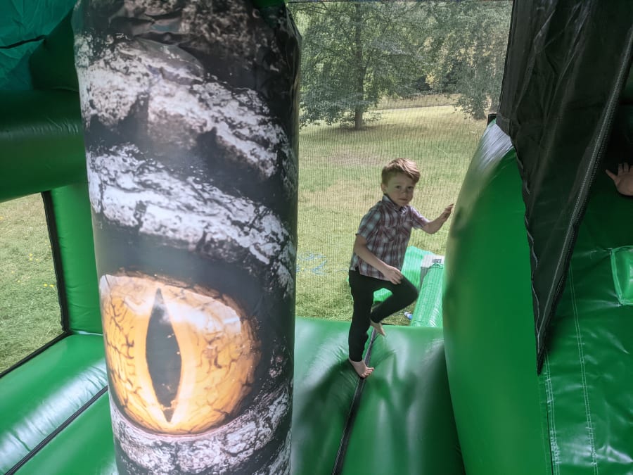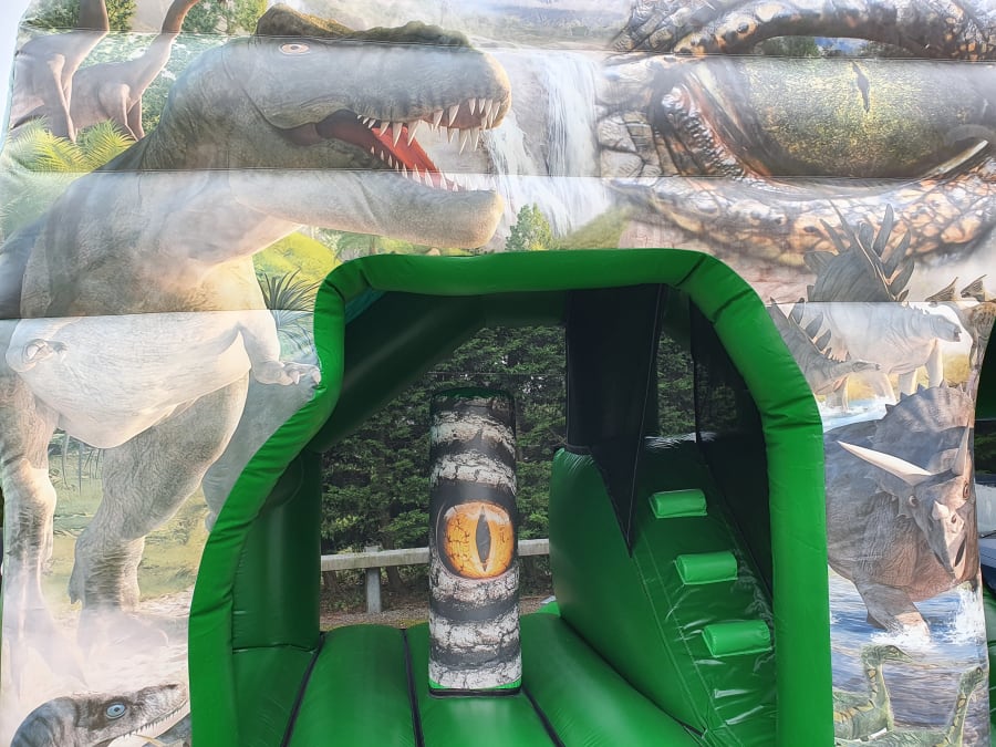 It has a large bouncy area, scary dinosaur eye pop up and good size slide. Make your child's birthday an unforgettable adventure that will leave young party-goers roaring with delight.