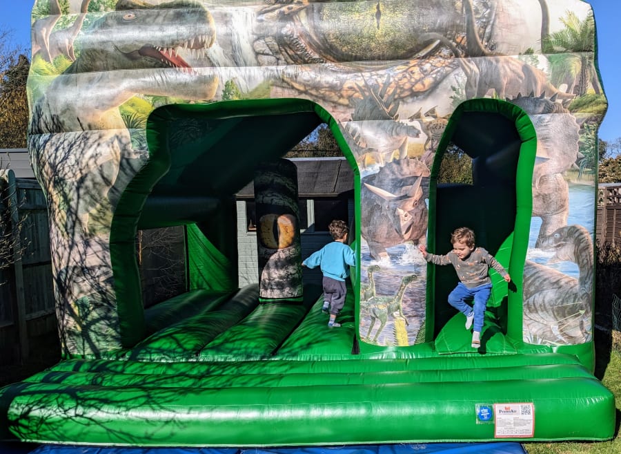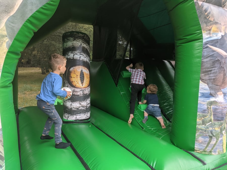 The open front design makes it easy to supervise, with all parts of the inflatable viewable from the front. Although not visible in the photos, the back and sides are all fitted with a safety mesh, so children can only access the inflatable from the front. The Dino Castle is great for the whole family to enjoy.