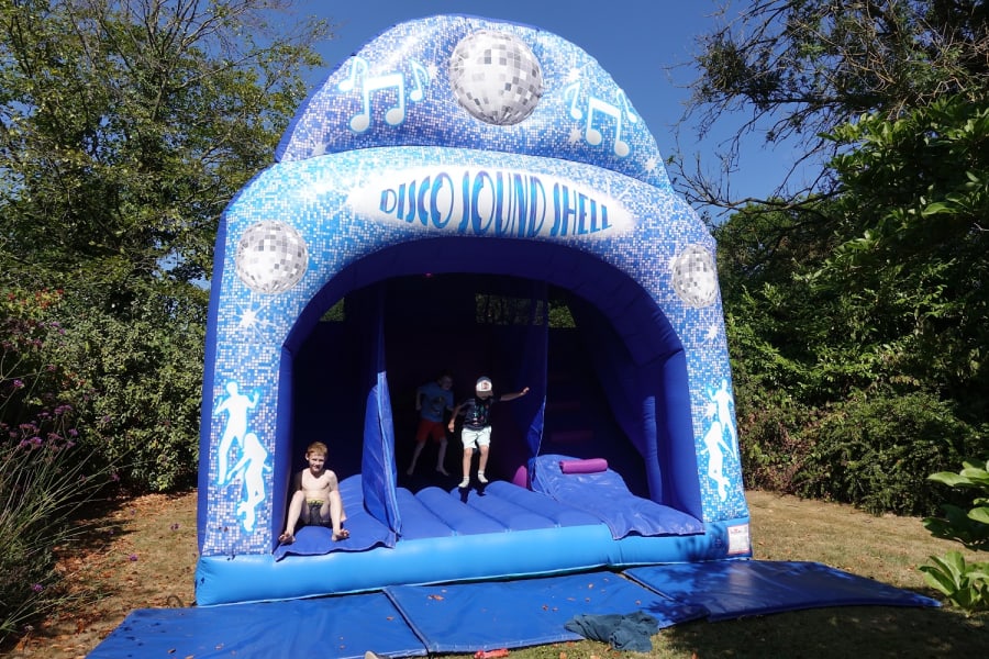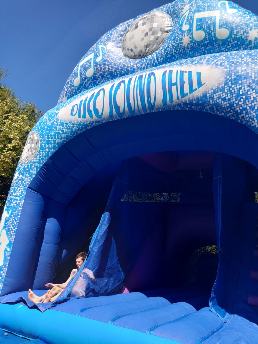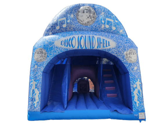 Bring the club vibes to your event with a built-in Bluetooth speaker and disco light. The Disco Sound Shell has a towering 9ft platform slide, one of the tallest of all of our combi castles!