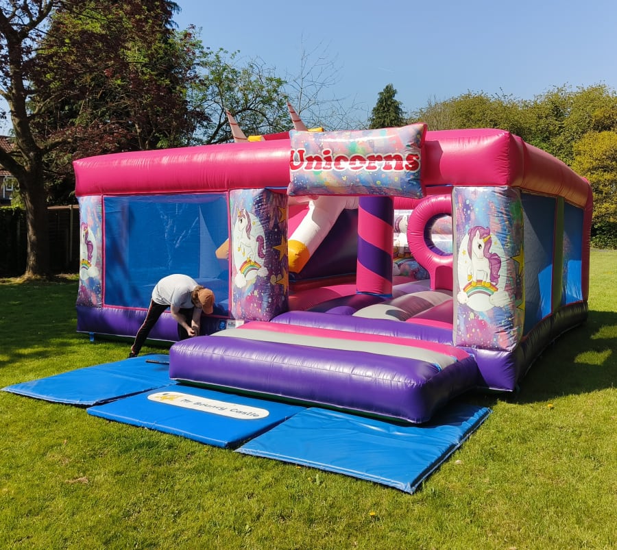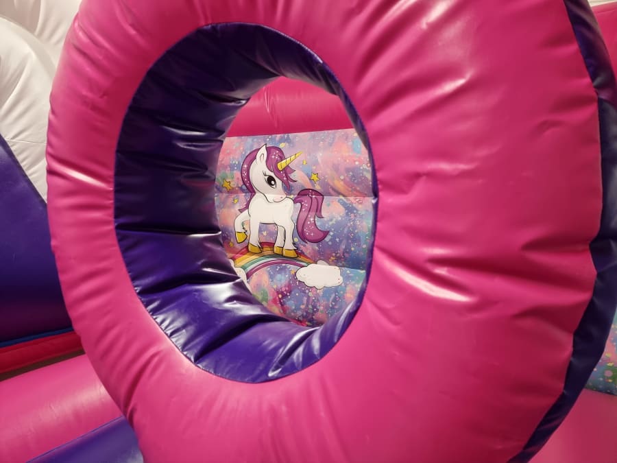 With its low height of 3.3 meters and open top, our Unicorn inflatable is designed to fit in most indoor halls, also making it ideal for indoor parties. Featuring a massive bouncy area, slide, pop ups and a fun hoop to jump through, this inflatable guarantees hours of fun. We have also designed this castle with mesh sides, allowing you to keep a watchful eye on the little ones.