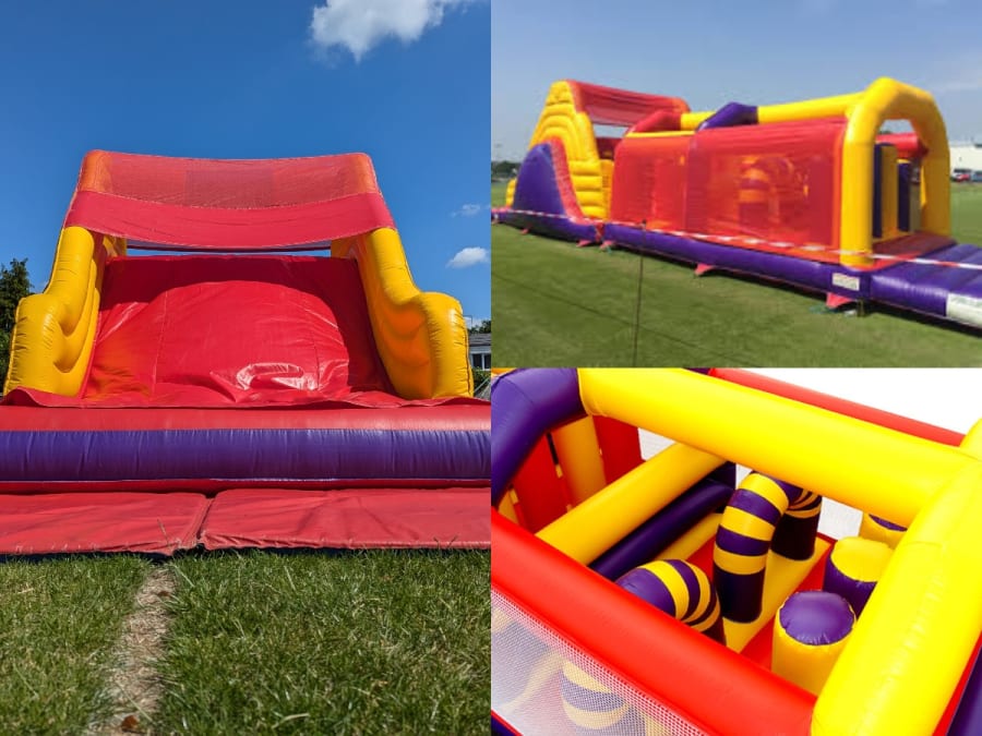 Perfect for school fetes, corporate events, parties and fun days, the Prime Obstacle Course will test your agility and endurance. Our vibrant Red, Purple and Yellow inflatable Obstacle Course is guaranteed to be the highlight of any gathering.